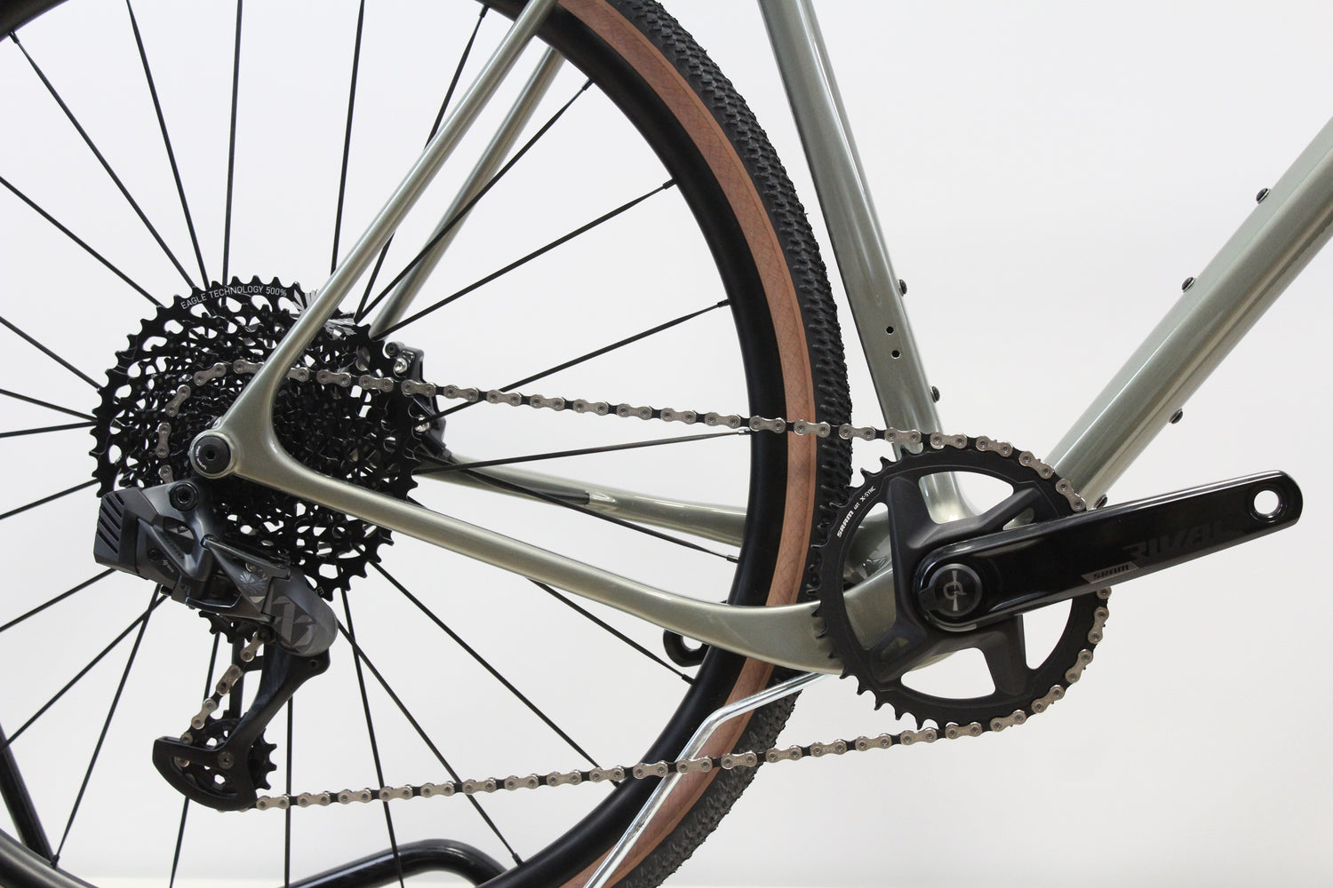 Mit breiten Straßen-/Cross-/Gravel-Reifen (32–40 mm) ist es ein Allround-Bike, das sich perfekt für Fahrten auf gemischtem Untergrund und für die meisten Gravel-Strecken eignet